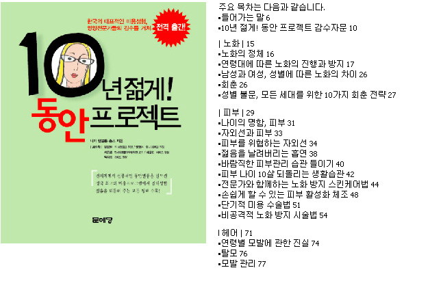 ¹Ì¿ë, ½ºÅ¸ÀÏ, °Ç°¿¡ °üÇÑ ¸ðµç Á¤º¸¸¦ ¿«Àº Ã¥ ¡º10³â Àþ°Ô! µ¿¾ÈÇÁ·ÎÁ§Æ®¡»´Â ¹Ù·Î Àû¿ëÇÒ ¼ö ÀÖ´Â ¿Ü¸ð °ü¸®¹ýºÎÅÍ 10³âÀ» ¹Ù¶óº¸°í ÇÏ´Â ÇǺΠ°ü¸®ÀÇ ÀÛÀº ½À°ü±îÁö ¾Ë·ÁÁÝ´Ï´Ù. µ·À» µéÀÌÁö ¾Ê°í È¥ÀÚ¼ ÇÒ ¼ö ÀÖ´Â °ü¸®ºñ¹ý¿¡¼ ÃÖ¼ÒÇÑÀÇ ºñ¿ëÀ¸·Î ÃÖ´ë È¿°ú¸¦ ±¸ÇÏ´Â È¿°úÀûÀΠȰ¿ë¹æ¹ýÀ» ¼ö·ÏÇß½À´Ï´Ù.